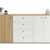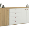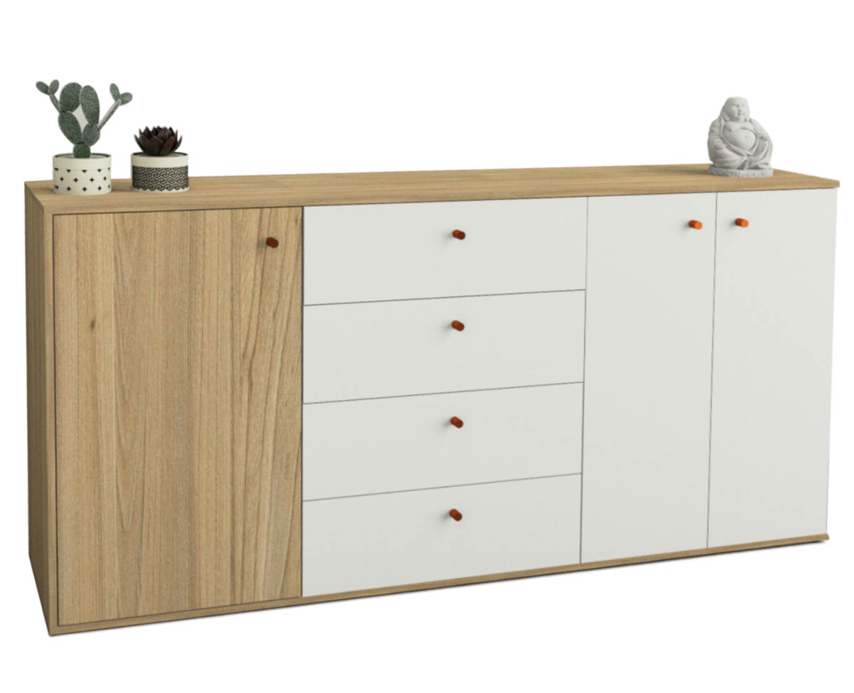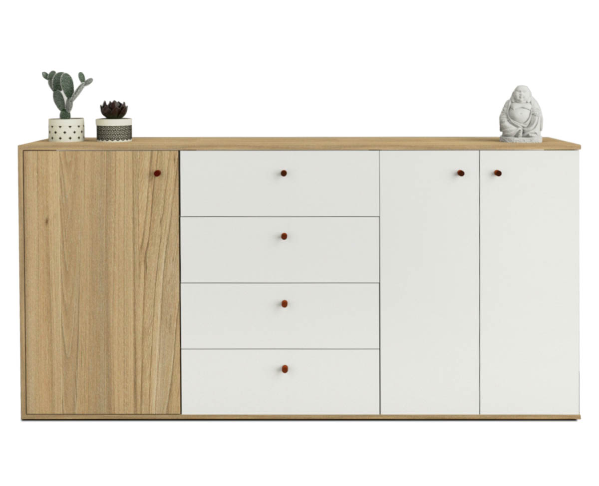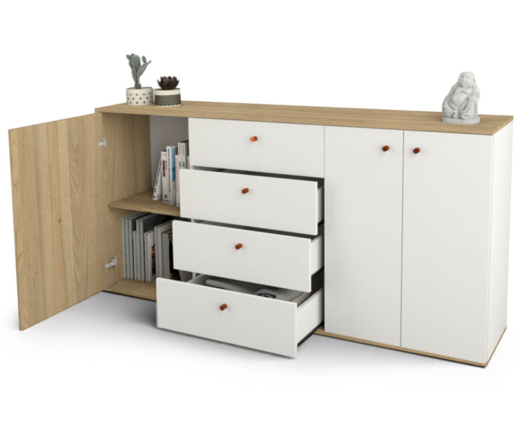 Bahiut Modular con diseño moderno fabricado en MDF. Cuenta con tres puertas y cuatro cajones.