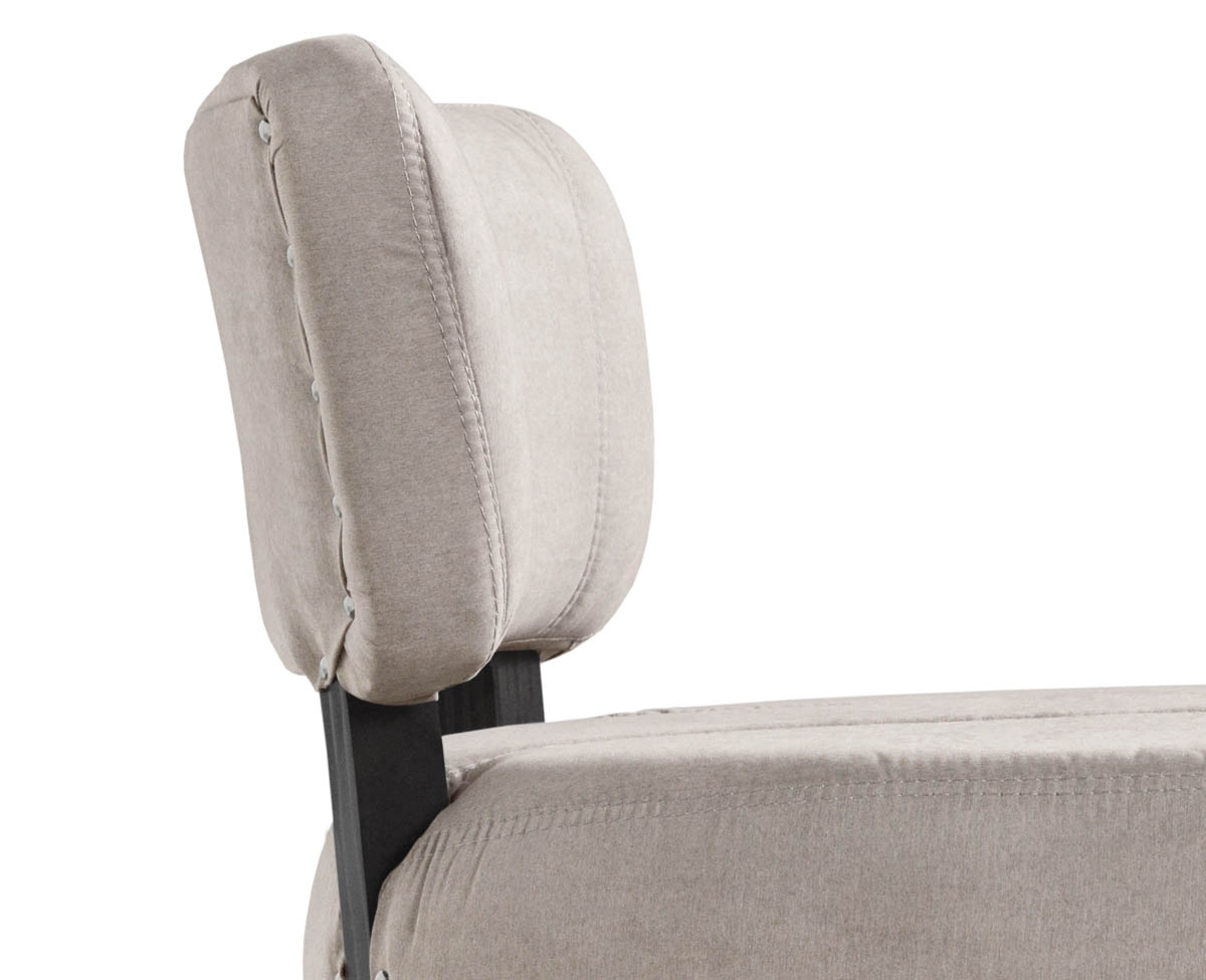 Banqueta baja fabricada en madera maciza tapizada en tela Sunny Antimanchas. Variedad en colores.
