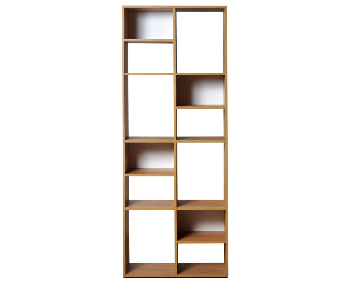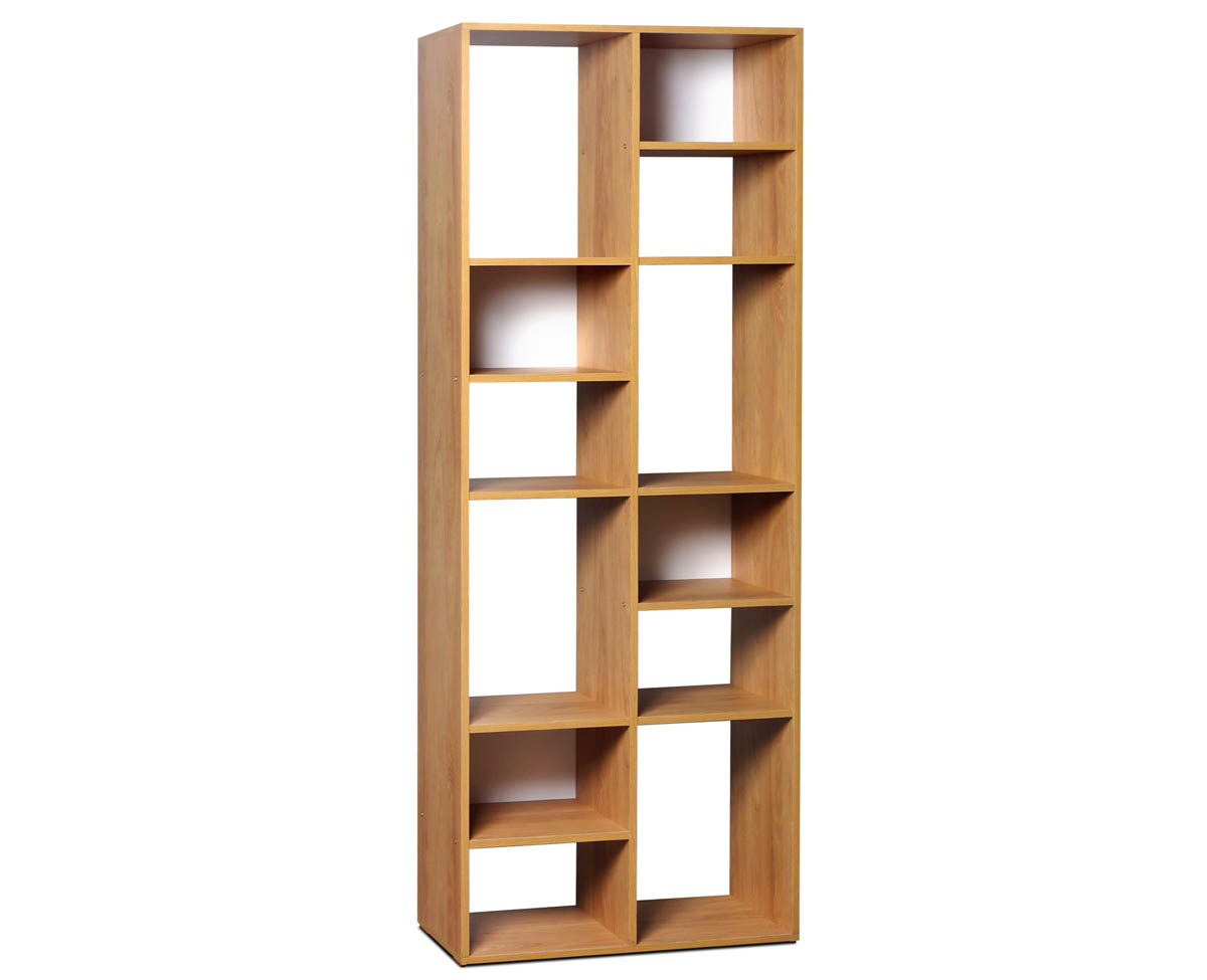 Biblioteca fabricada en MDF con 12 estantes, disponible en varias tonalidades.