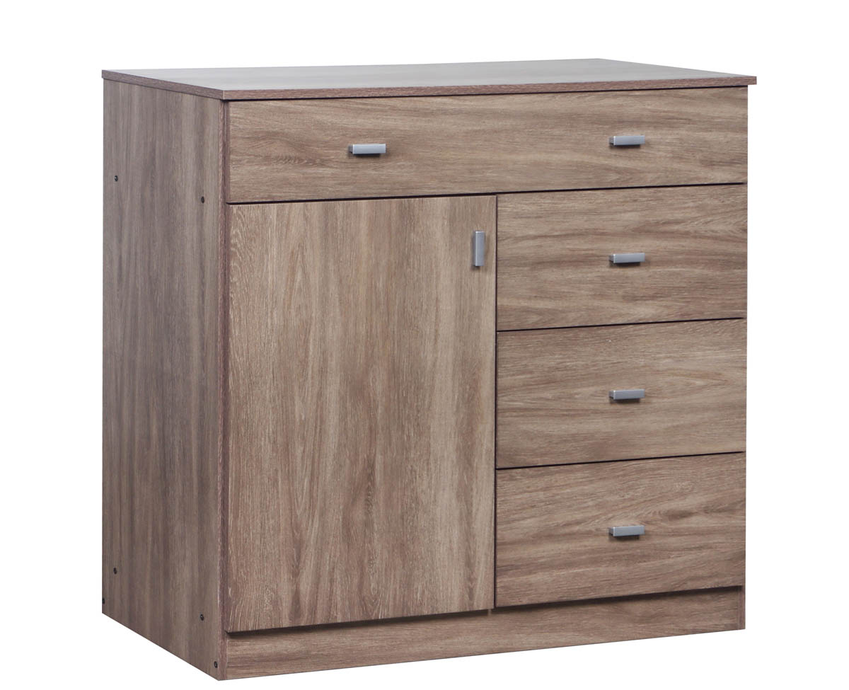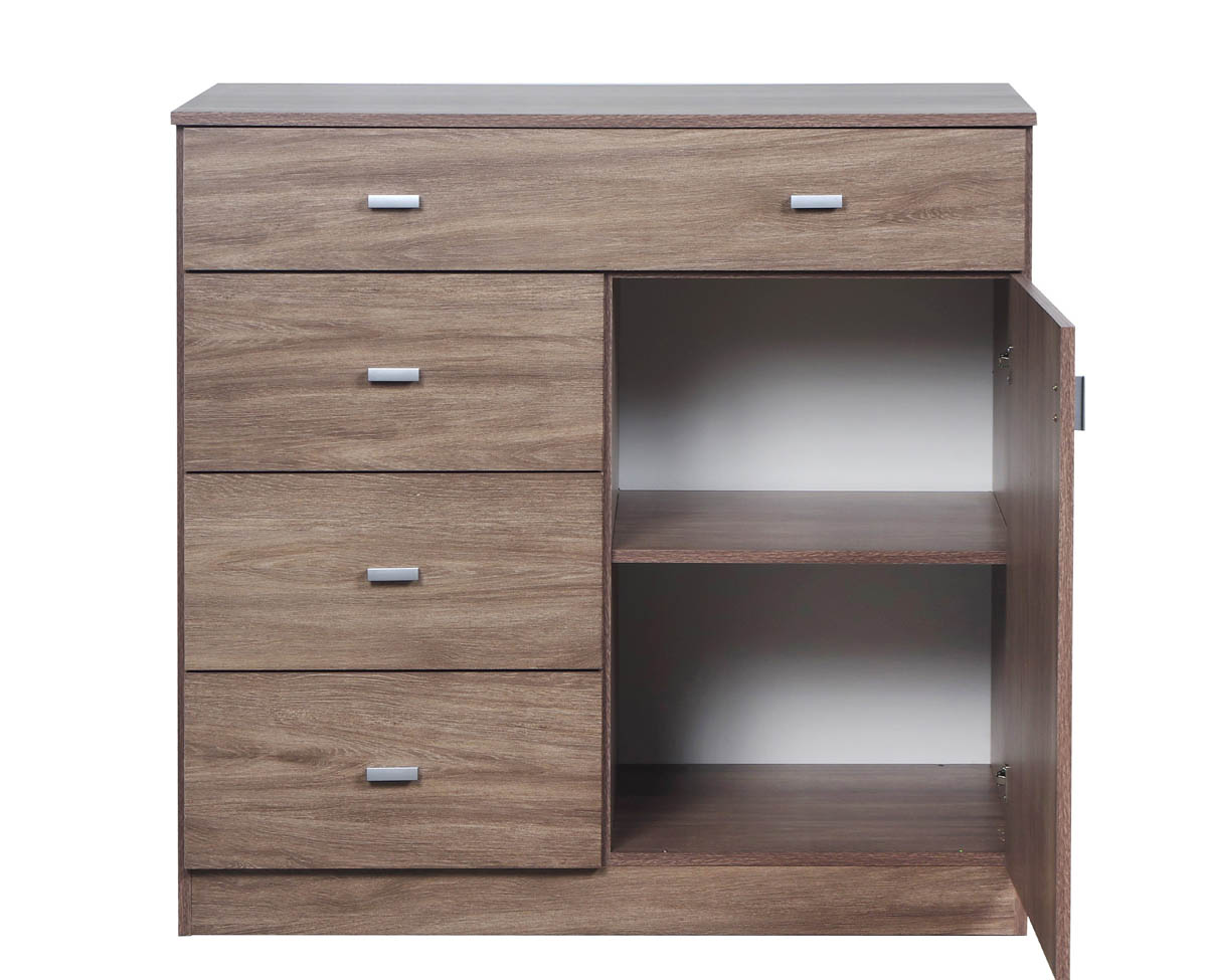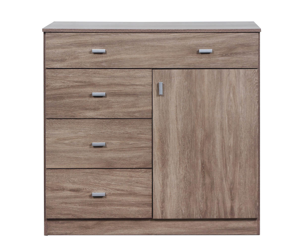 Cómoda compuesta por 4 cajones con correderas tipo Z y 1 puerta.