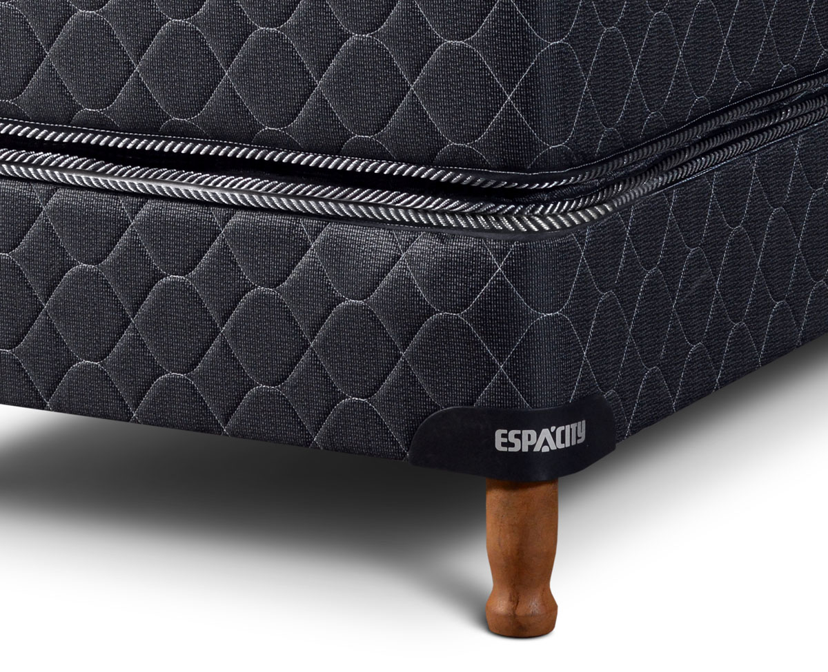 Conjunto compuesto por colchón de espuma + Box. Espuma de Poliuretano de alta densidad. Densidad de la espuma: 30 kg. Tela de Jackard totalmente matelaseada. Agarraderas laterales.