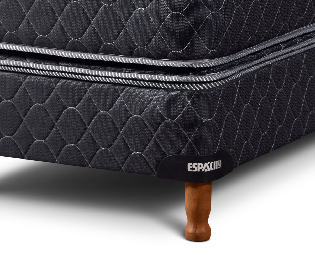 Estructura de acero templado y doble marco perimetral. Estabilizadores laterales. Aislantes. Espuma flexible de 30 Kg. Tela de Jackard totalmente matelaseada. Agarraderas laterales. Soporta hasta 120 Kg. Resorte Pocket.