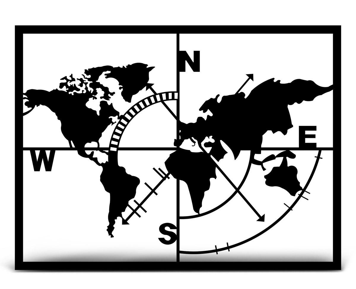 Cuadro Planisferio Ejes fabricado con MDF Fibro Fácil Negro de 5,5 mm de espesor