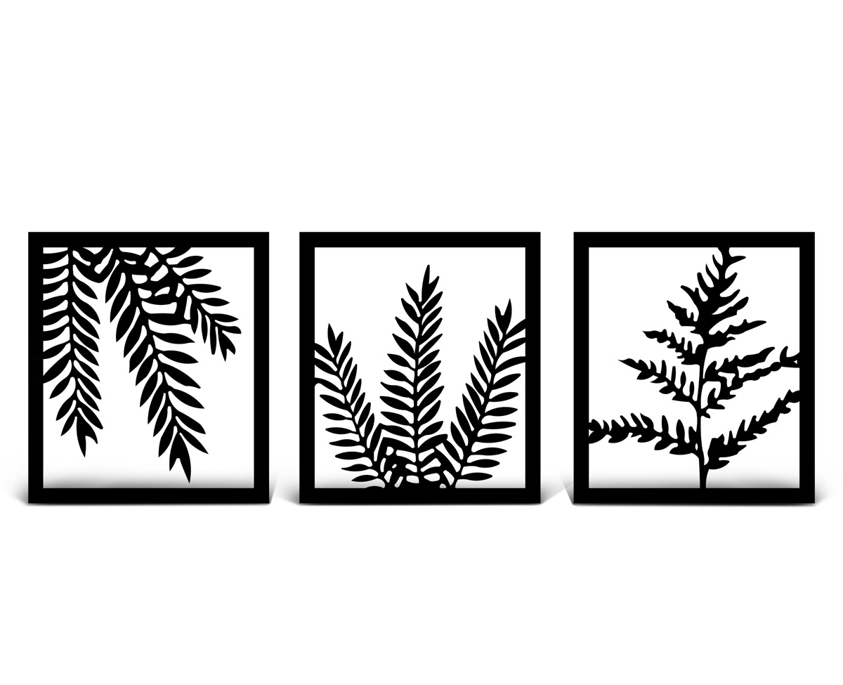 Cuadro Tríptico Plantas fabricado con MDF Fibro Fácil Negro de 5,5 mm de espesor