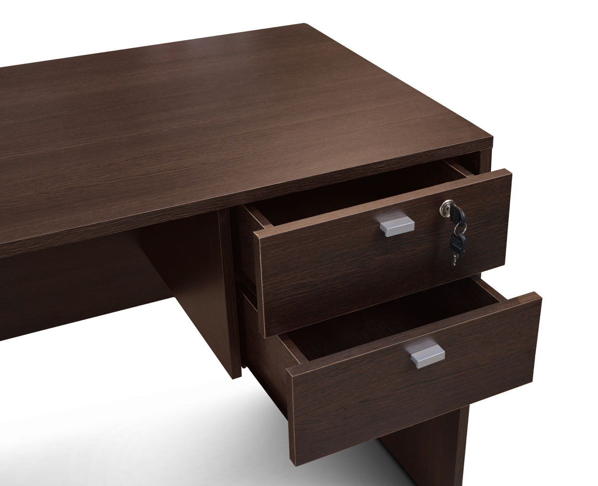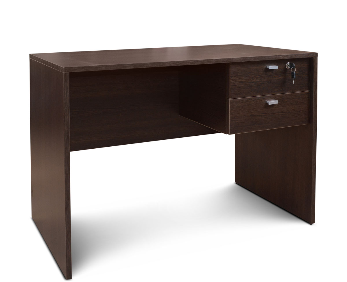 Escritorio fabricado en melamina. Compuesto por 2 cajones, 1 con cerradura.
