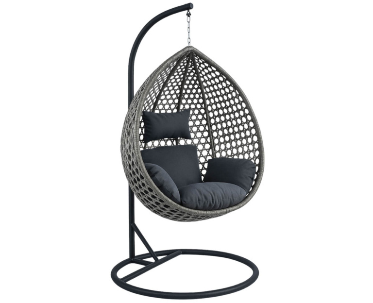 Hamaca Simil ratán con estructura de metal. Sistema plegable. Incluye almohadón.