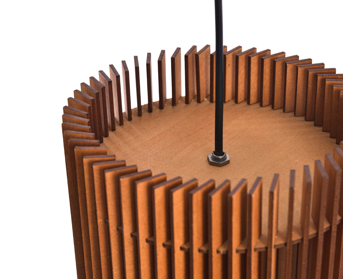 Lámpara cilíndrica fabricada en MDF con un diseño minimalista de varillas a 30º, que se adapta perfectamente a cualquier decoración. Además, su estructura de alta calidad garantiza su durabilidad y resistencia. Es perfecta para iluminar cualquier espacio, ya sea tu sala de estar, dormitorio, oficina o estudio, sumado a que su estilo elegante y sofisticado la convierte en una pieza decorativa única y llamativa.