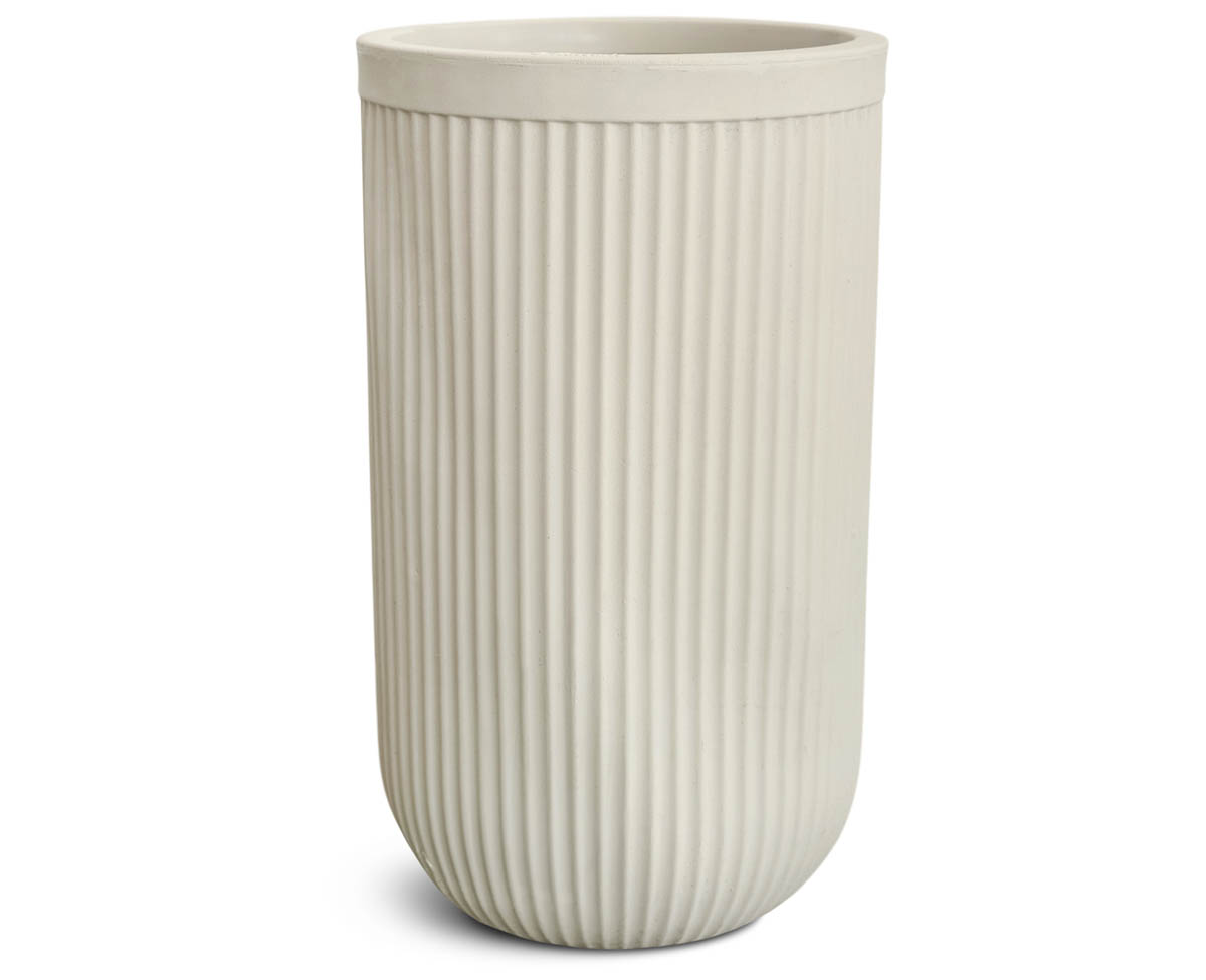 Maceta plástica rotomoldeada de diseño moderno y minimalista, ideal para uso tanto en interiores como en exteriores. Su acabado con estrías verticales aporta un estilo elegante y contemporáneo, mientras que el borde superior redondeado y la base levemente cónica garantizan estabilidad y practicidad. Fabricada mediante rotomoldeo, ofrece gran resistencia a impactos, rayos UV y cambios de temperatura, asegurando una larga vida útil sin perder su apariencia original.