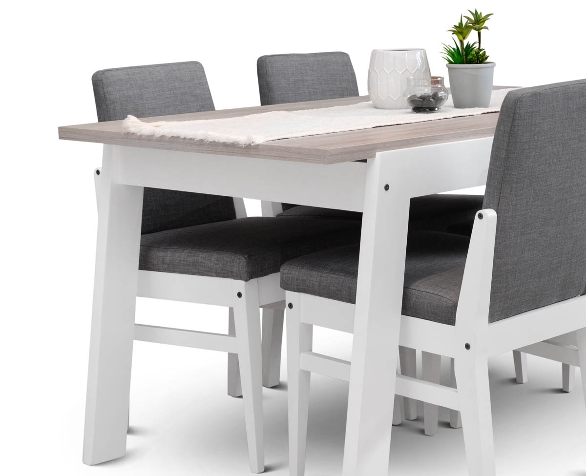 • 4 Sillas Bakú tapizadas en tela Aspen.