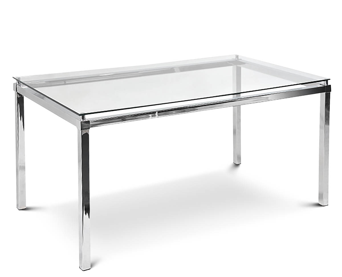 Mesa de comedor rectangular fabricada en caño con terminación cromada y tapa de vidrio
