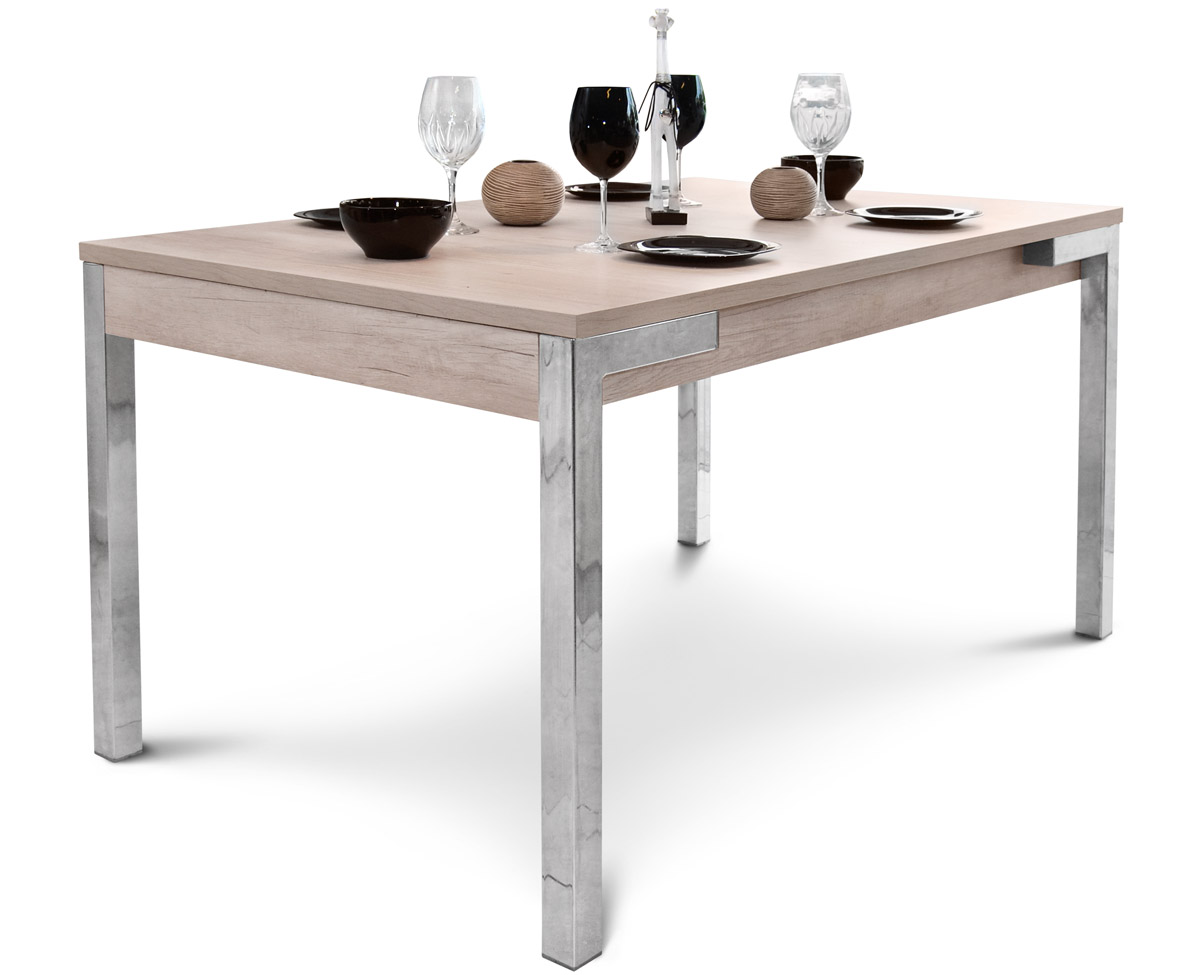 Mesa de comedor sobria, robusta y elegante. Fabricada en melamina de primera calidad y patas metálicas.
