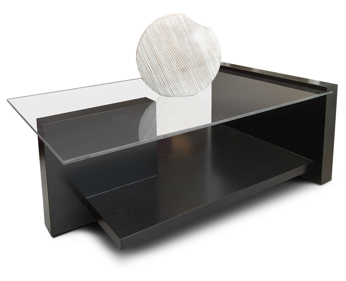 Mesa centro fabricada en madera de guatambú. Poseé estante de madera y vidrio.