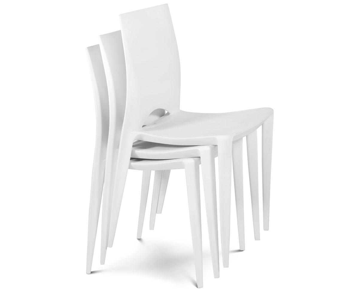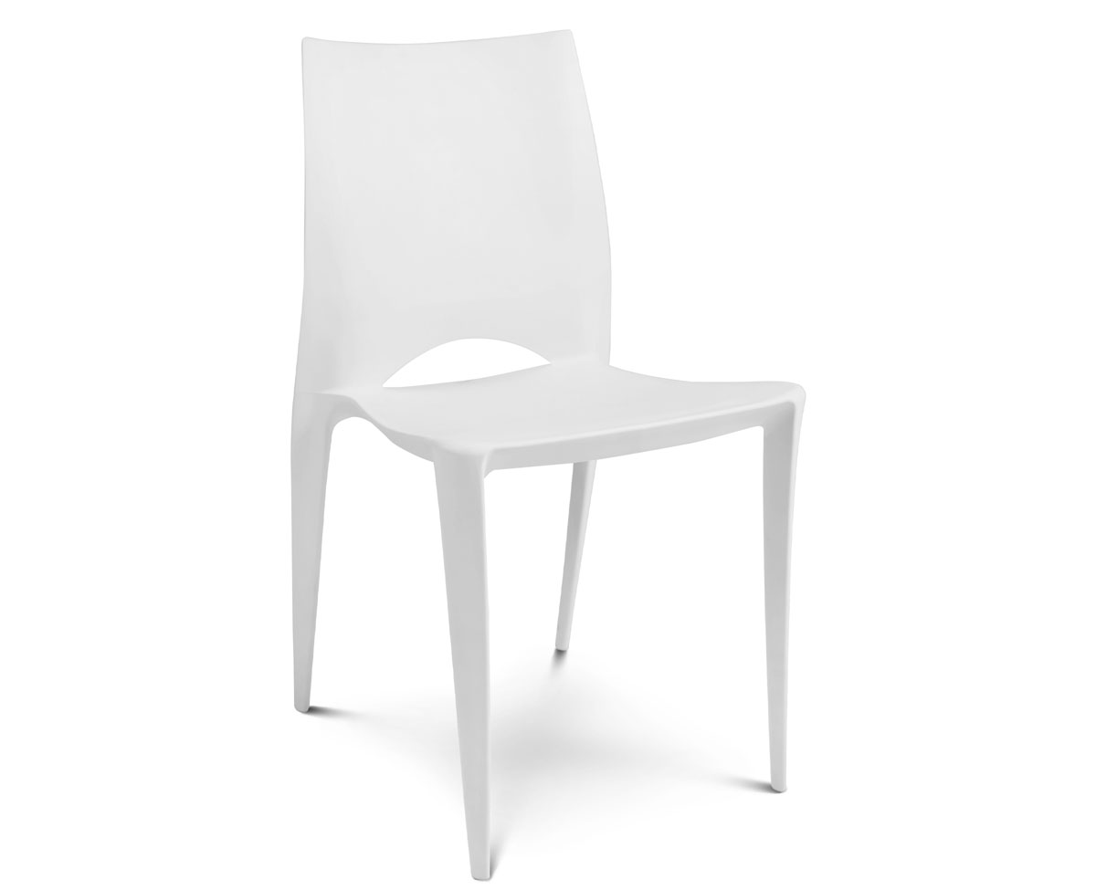 Silla fabricada en polipropileno de gran resistencia para uso interior y exterior. Diseño de silla apilable.