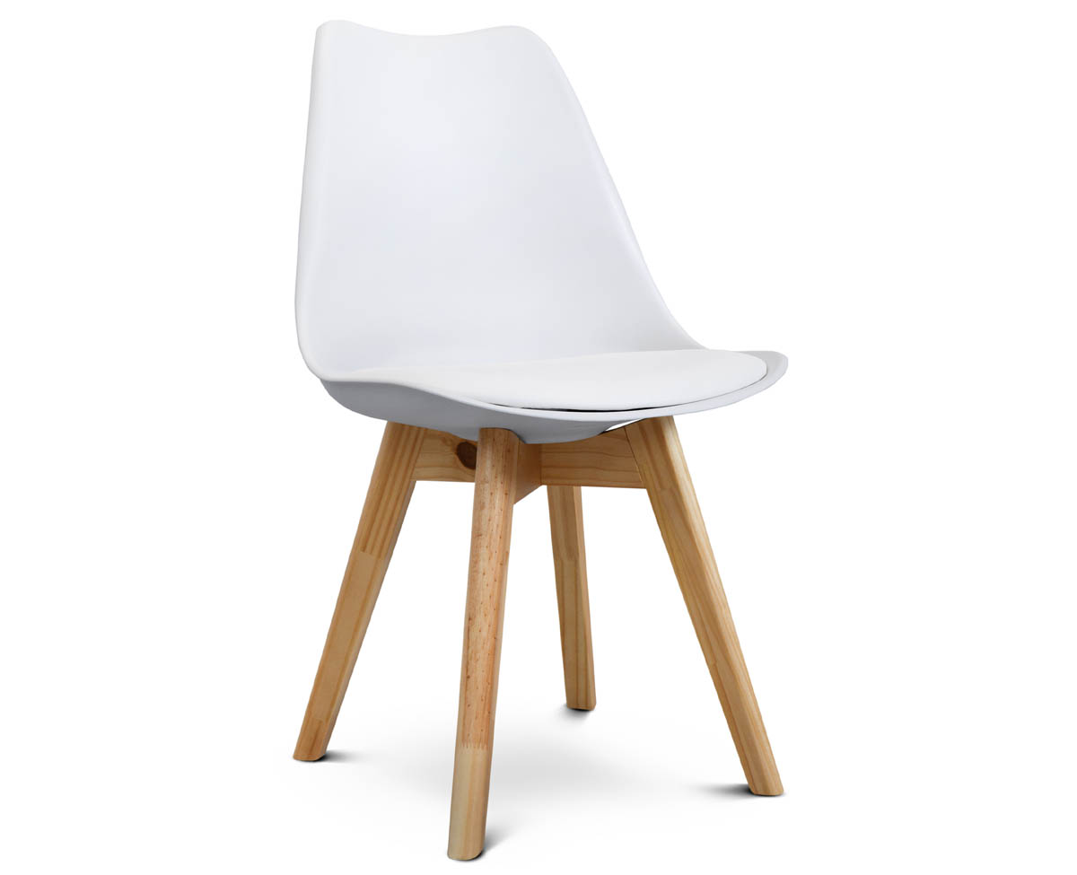 Silla de diseño moderno, elegante y muy confortable. Es muy ligera, fuerte y resistente al agua. Está confeccionada íntegramente en polipropileno 5-6 mm. Con asiento acolchado y patas de madera.