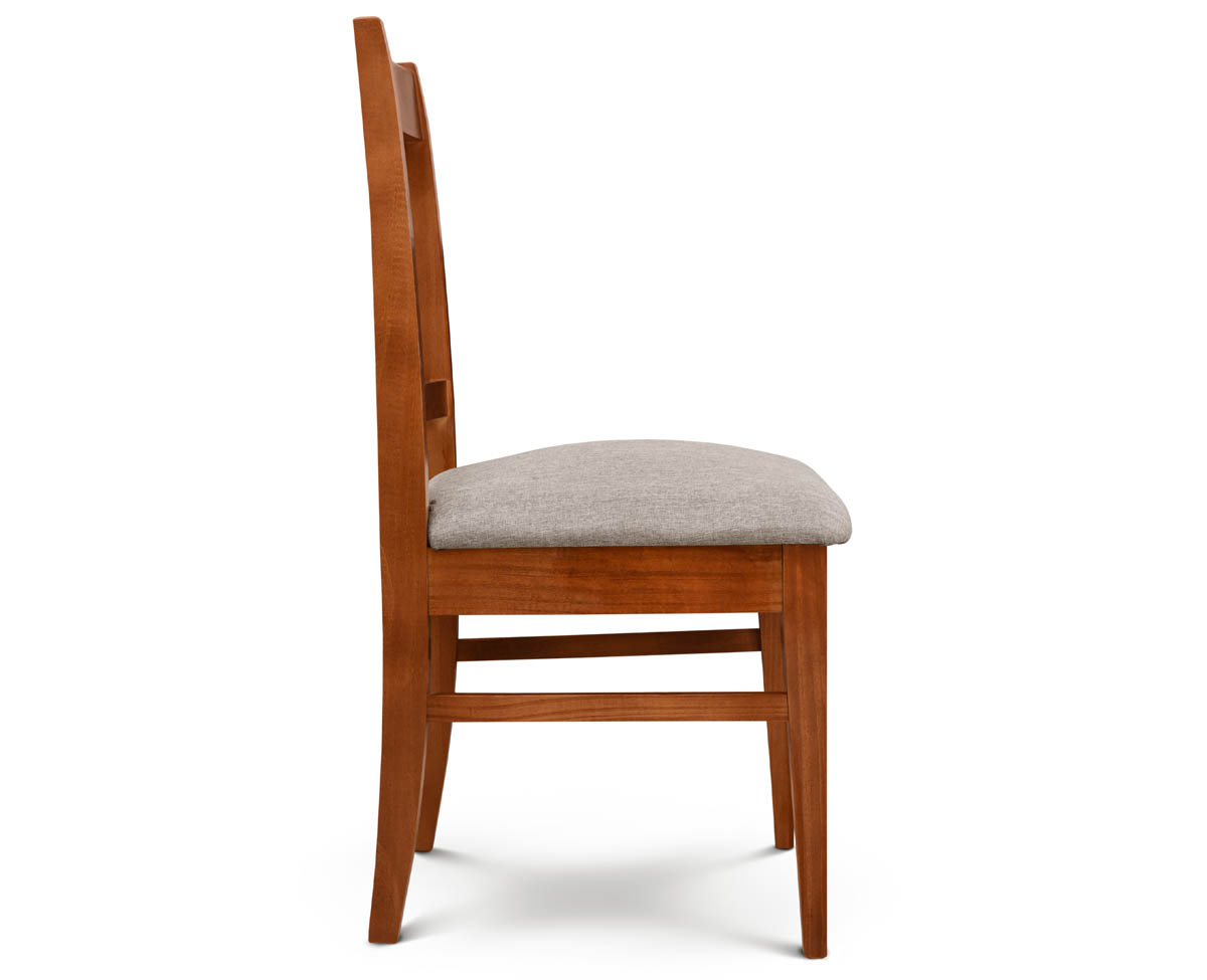 • 4 Sillas Euro Tapizadas en tela Shot Antimanchas fabricada en madera maciza de Pino Clear.
