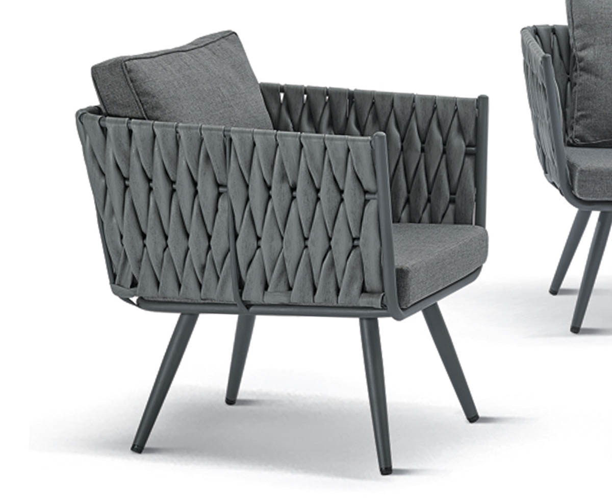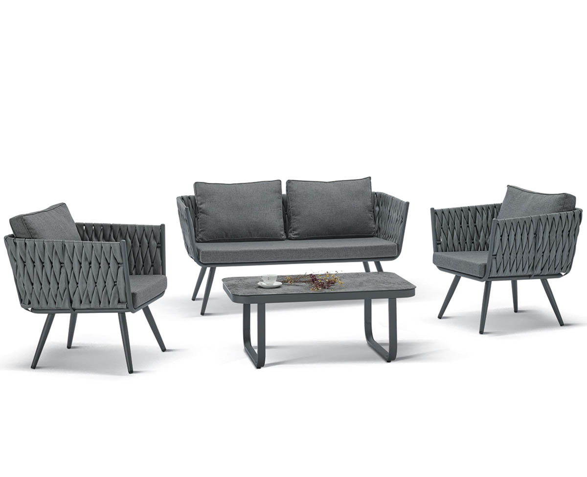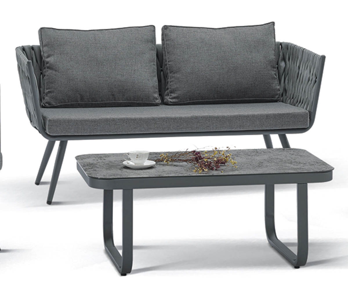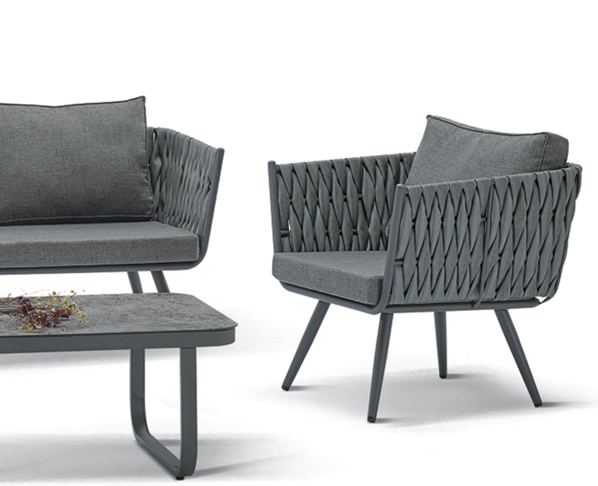Set de sillones con mesa baja. Estructura metálica. Mesa con vidrio templado de 5 mm.