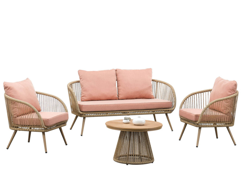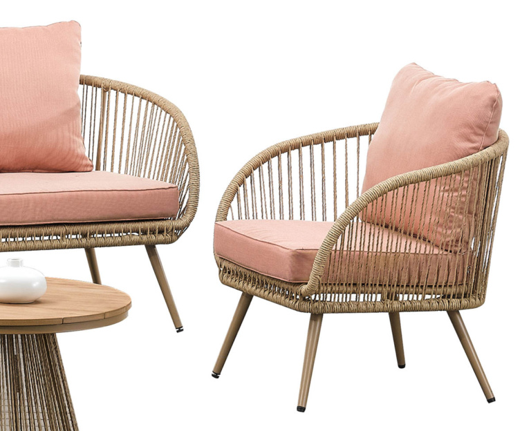 Juego de Sillones y mesa baja redonda. Estructura metálica.