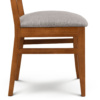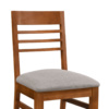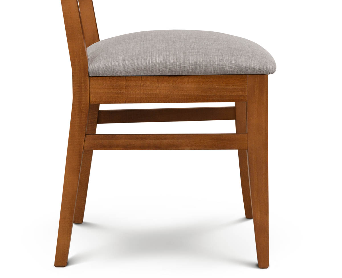 Silla de madera maciza con asiento tapizado en tela Aspen. Fabricada en madera maciza de Pino Clear. La rigurosa selección de la madera y su posterior tratamiento, dan como resultado un mueble de calidad, con betas más uniformes y un mínimo de nudos.