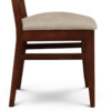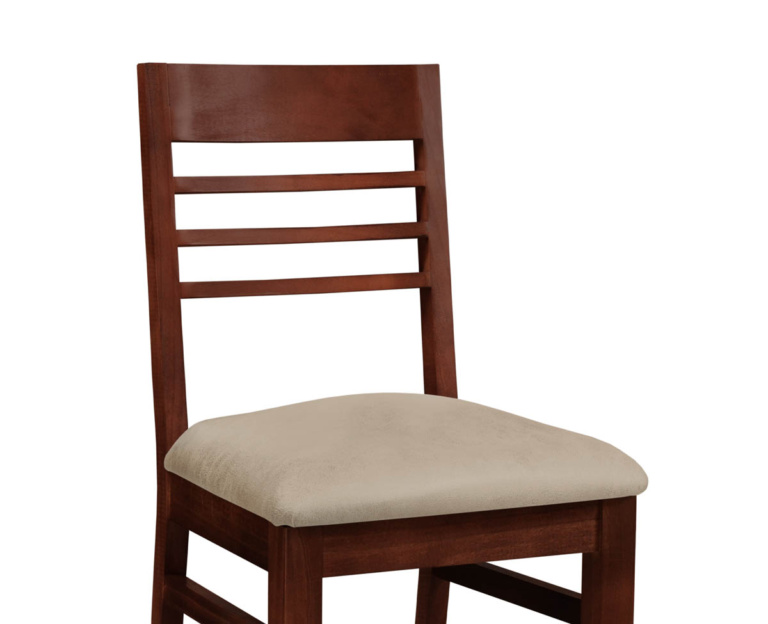 Silla de madera maciza con asiento tapizado en Cuerotex. Fabricada en madera maciza de Pino Clear. La rigurosa selección de la madera y su posterior tratamiento, dan como resultado un mueble de calidad, con betas más uniformes y un mínimo de nudos.