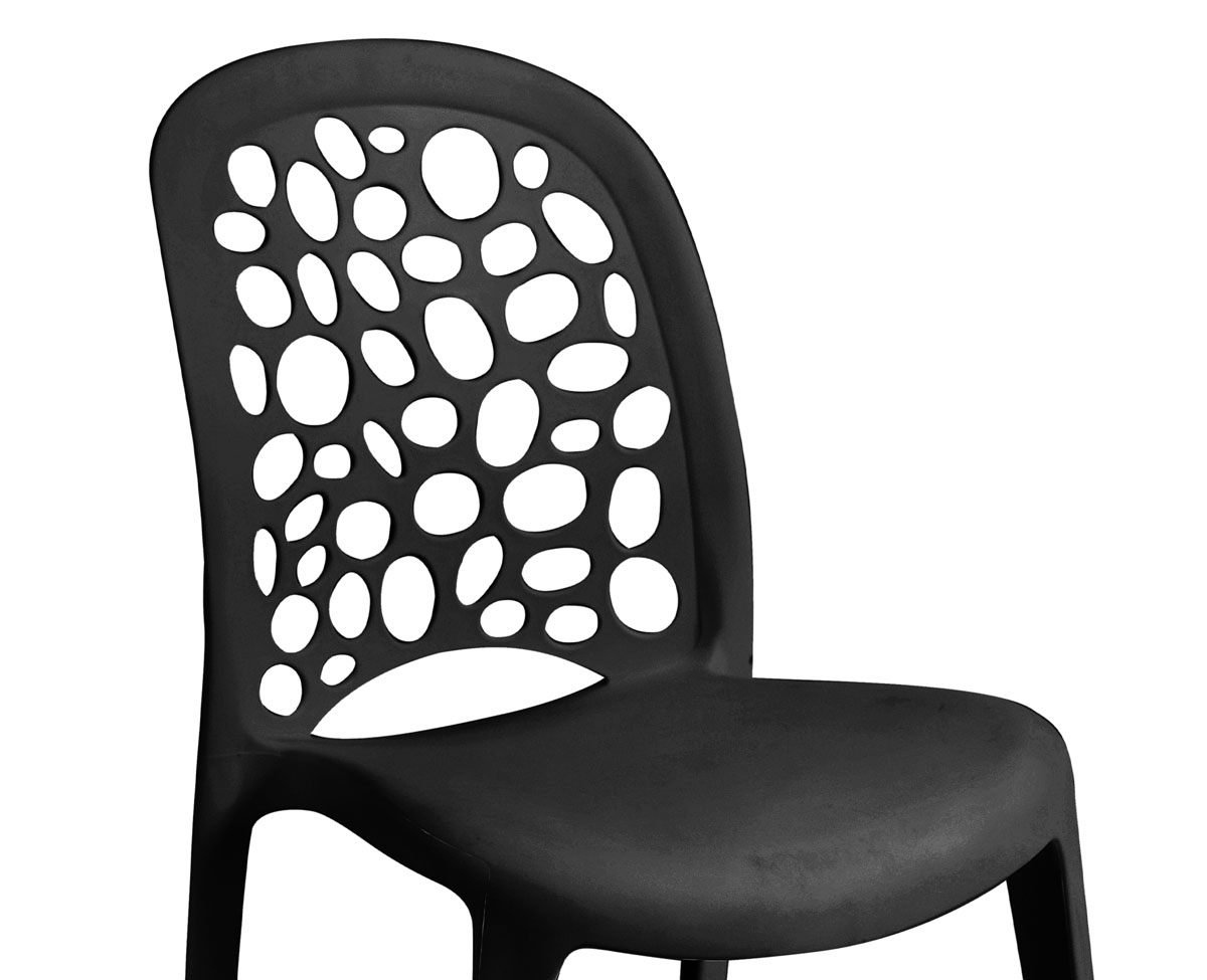 Silla de diseños curvos fabricada en polipropileno de gran resistencia para el uso interior y para exterior. Diseño de silla apilable. Fácil de Limpiar , liviana y muy durable.