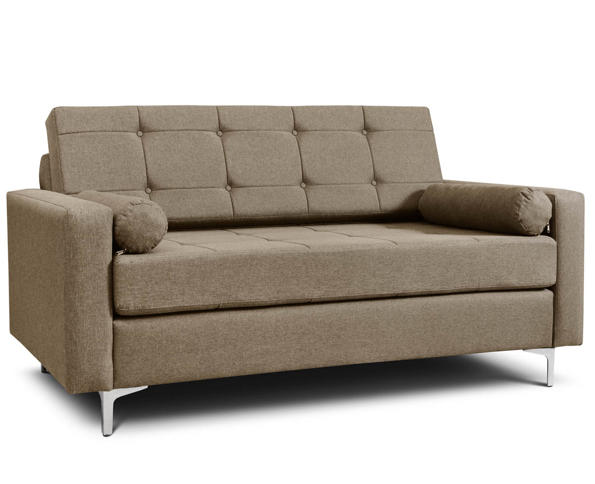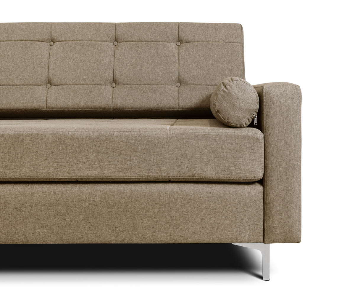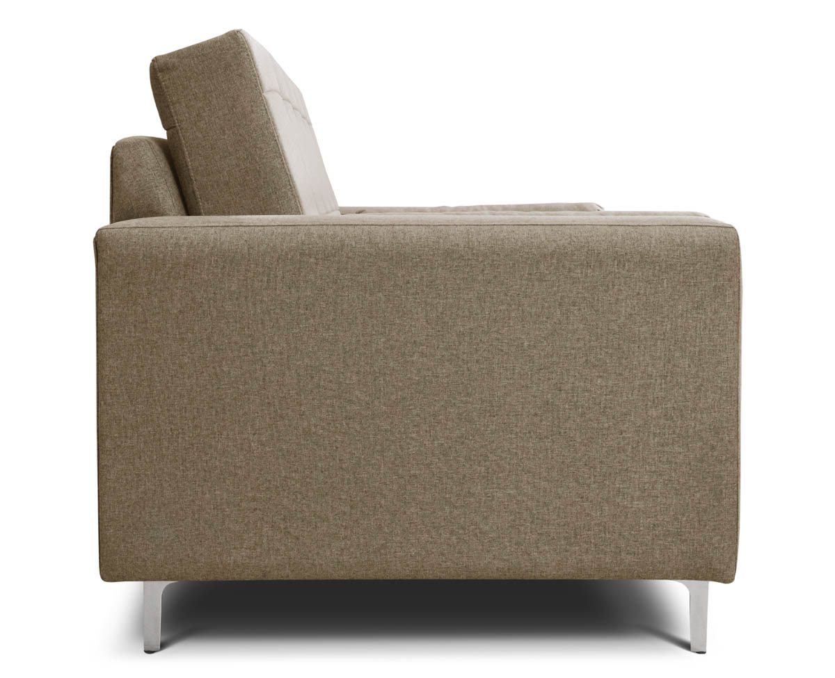 Sillón de 2 cuerpos tapizado en tela Shot con tratamiento antimanchas. Patas de aluminio. Disponible en diferentes colores de tela.
