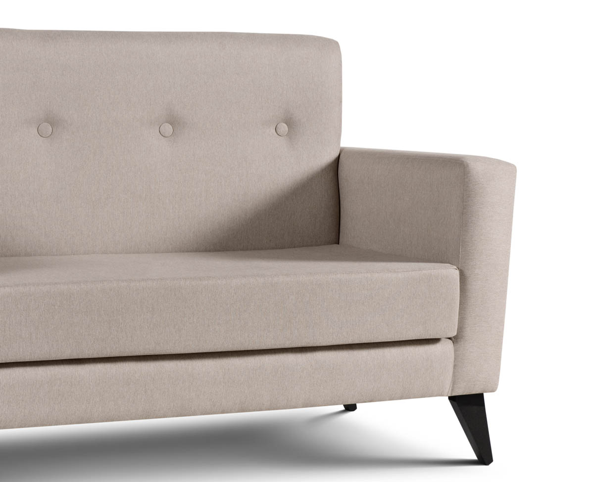Sillón de 2 cuerpos fabricado en madera y tapizado con tela Shot de primera calidad. Variedad en colores.