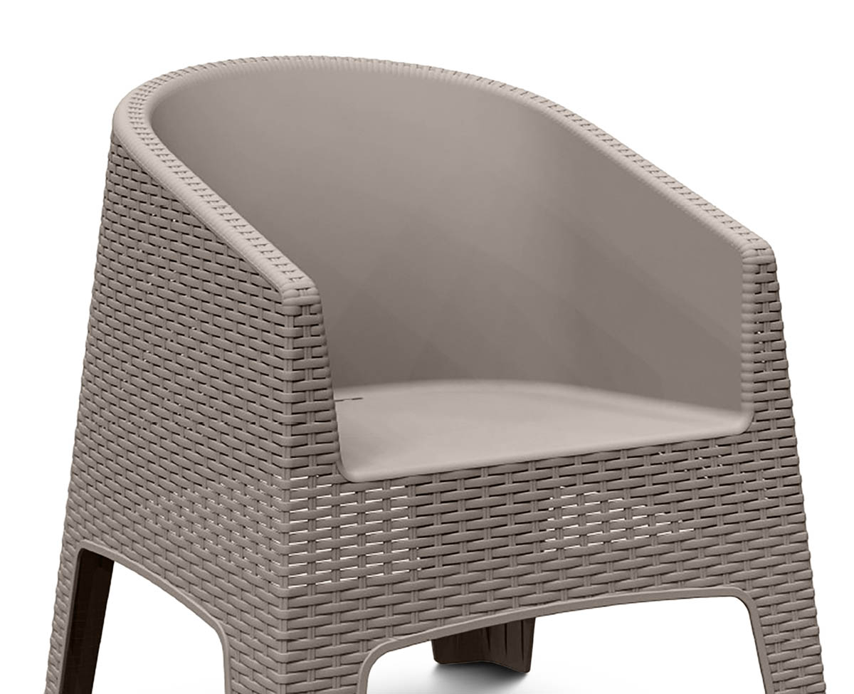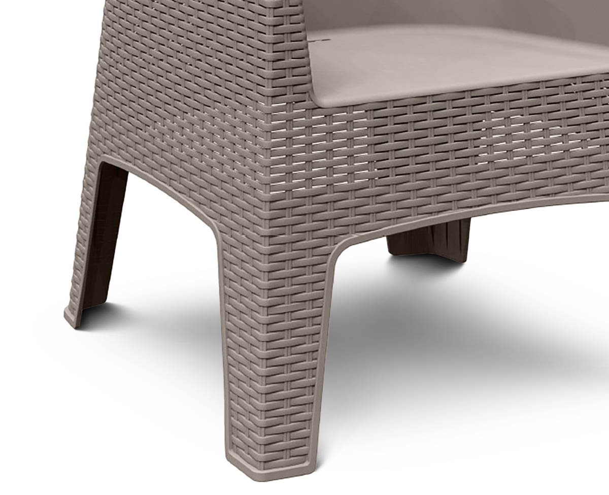 Sillón individual para exterior fabricado en Polipropileno. Resistente a la intemperie gracias a su tratamiento con filtro UV y filtro de luz.