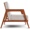 Fabricado en madera maciza de Pino Clear. La rigurosa selección de la madera y su posterior tratamiento, dan como resultado un mueble de calidad, con betas más uniformes y un mínimo de nudos. Posee asiento y respaldo tapizados en tela Shot Antimanchas. Variedad en Colores.