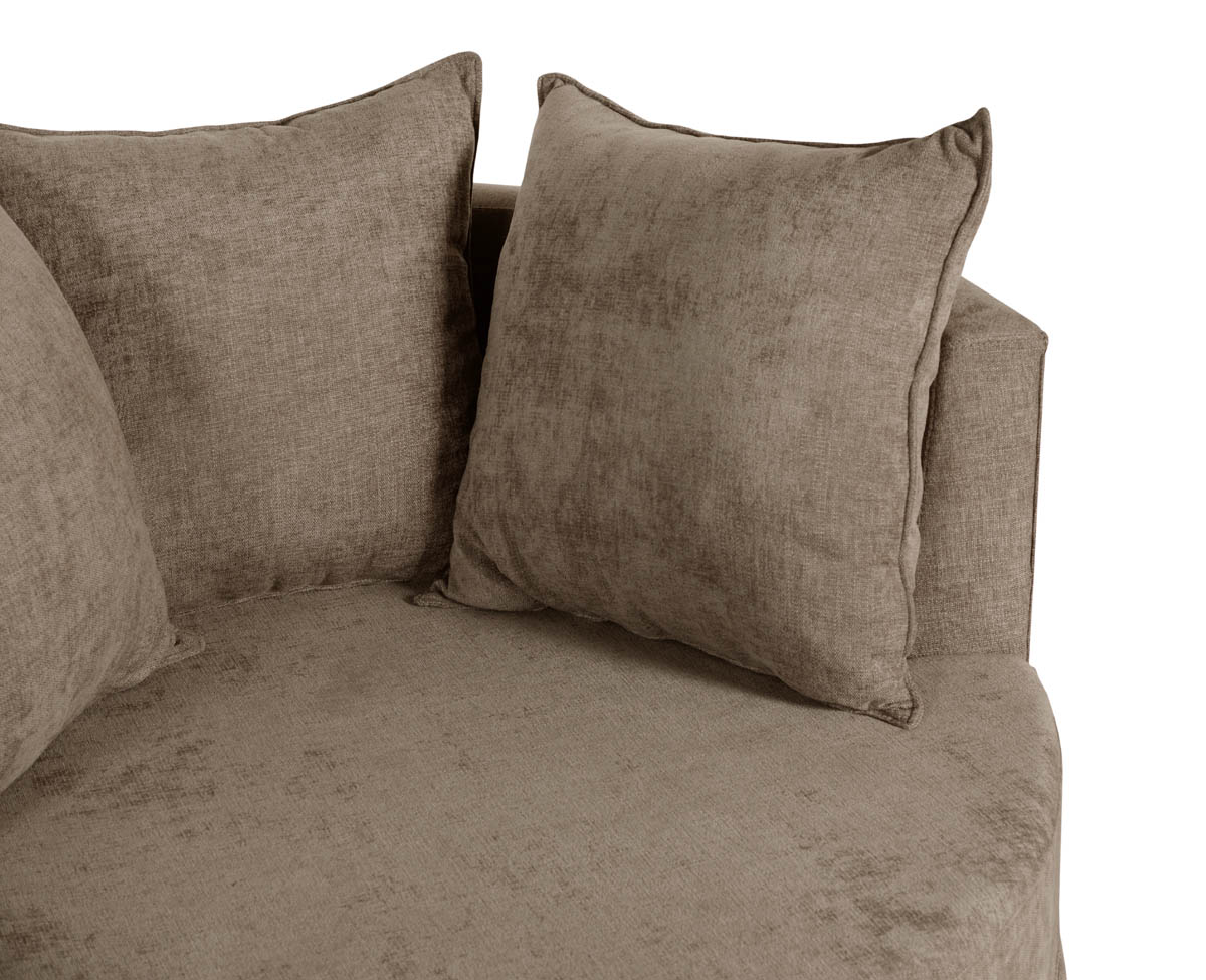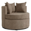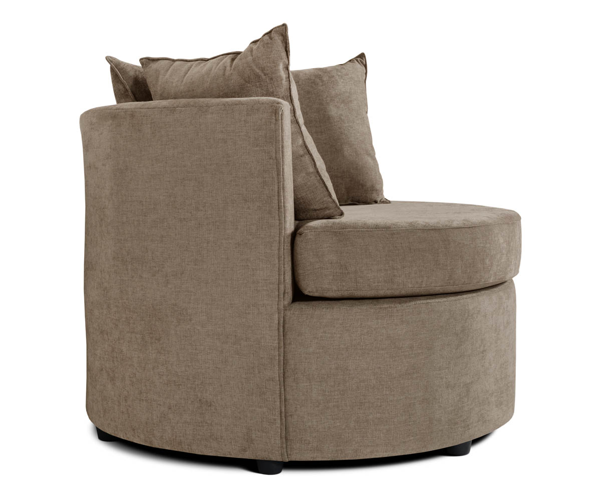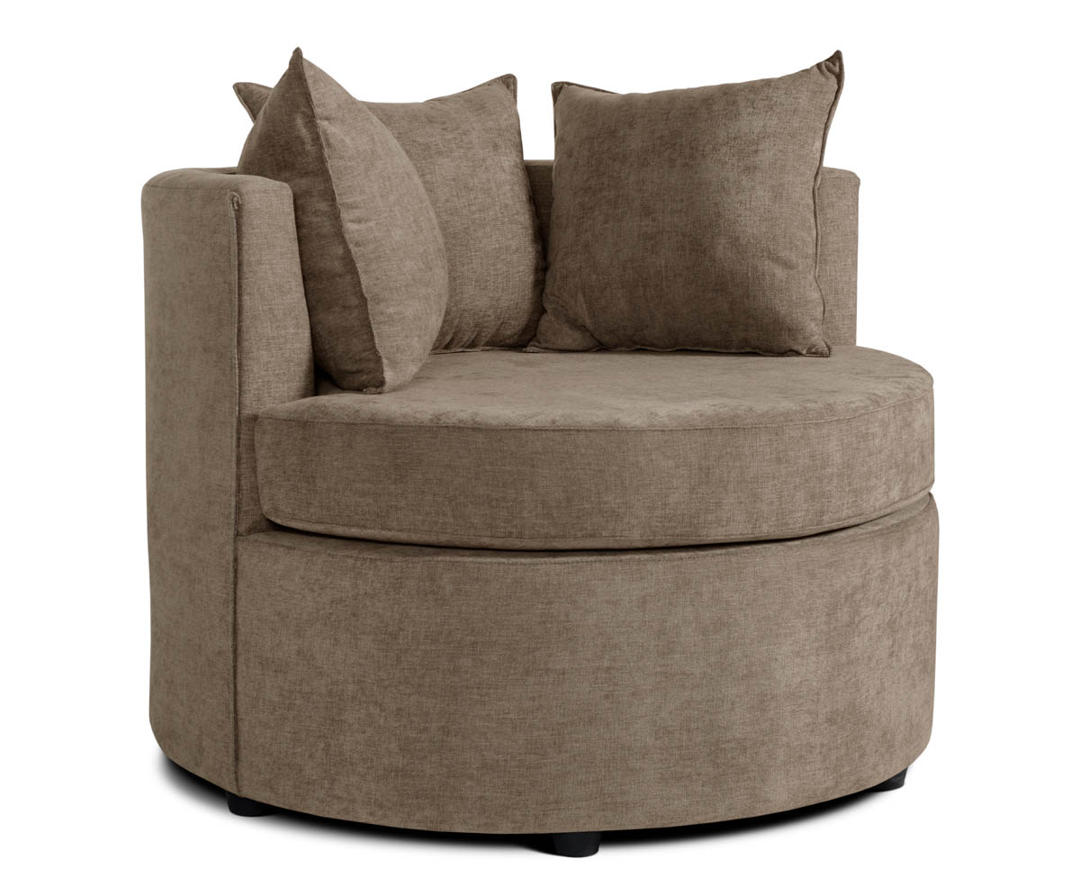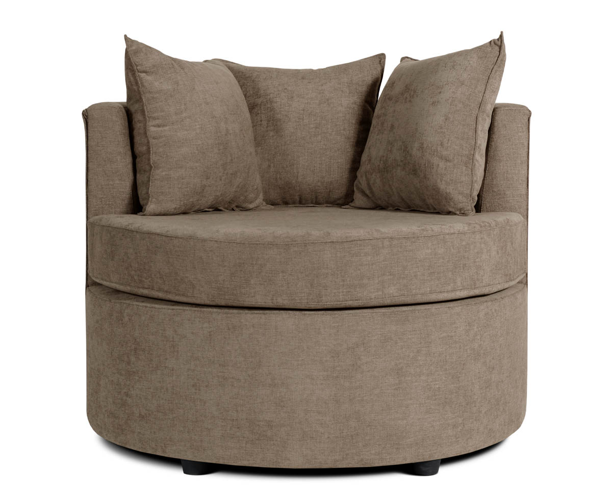 Este elegante sillón redondo combina estética moderna con confort envolvente. Ideal para ambientes minimalistas o cálidos. El respaldo semicircular abraza suavemente el asiento, creando una sensación de refugio y comodidad. Tres almohadones generosos y mullidos complementan el diseño, invitando al descanso prolongado.